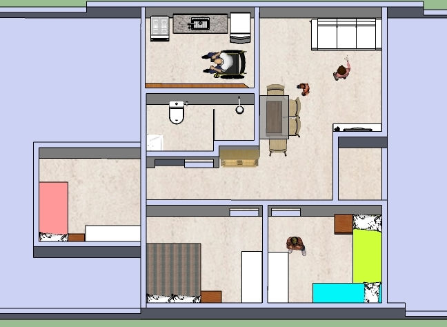 Para atender uma família com seis pessoas o apartamento que contava com 45m², dispondo de dois quartos, sala, cozinha/área de serviço e banheiro, não era o bastante. Foi necessário aumentar em mais dois o número de quartos, dispor de um espaço gourmet, área de serviço independente da cozinha, lounge e sala de estar. Todos esses ambientes foram possíveis graças á uma área de cobertura de iguais 45m² e sistema construtivo utilizando drywall que permitiu maior liberdade estrutural e agilidade no processo construtivo.